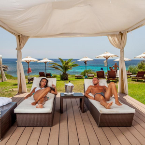 Circondato dalla vegetazione mediterranea e affacciato su un mare cristallino, l'hotel offre ai suoi